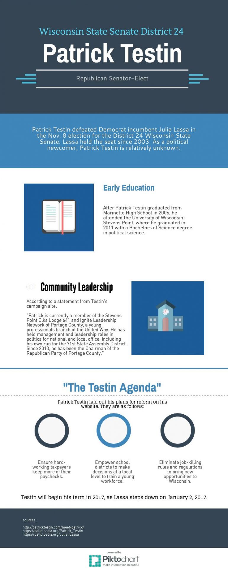 Republican Patrick Testin ran against Democratic incumbent Julie Lassa for Wisconsin State Senate in District 24 and won the election by just over 4,000 votes. Testin released a video advertisement on November 2 entitled “Raise the Bar” where he stated the following: