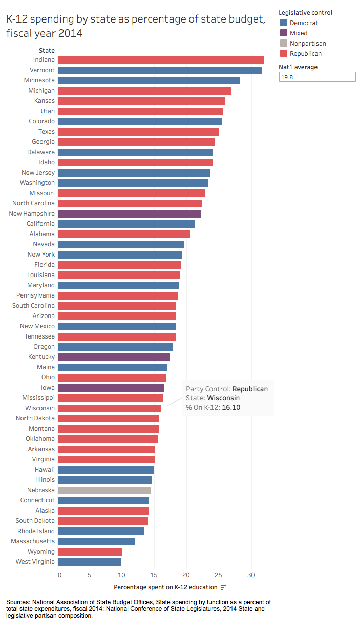 The Wisconsin state government implements a biennium budget every two years. The most recent is the 2015-17 biennium budget which the Assembly approved on July 8, 2015. The budget ultimately passed 52-46. Krug has pointed to his vote against the budget.