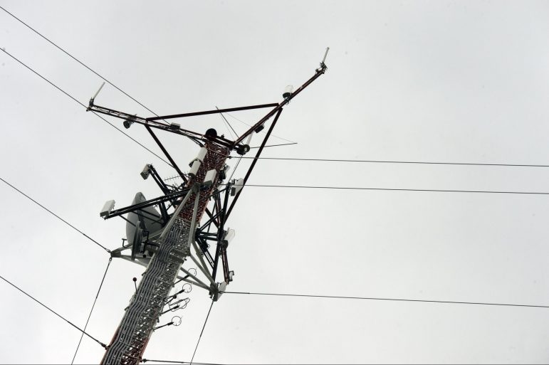 A microwave tower owned by the Pine-Net communications company is seen in Broken Bow, Okla., part of a U.S. Department of Agriculture (USDA) program to upgrade communications and broadband systems in the area. U.S. Sen. Tammy Baldwin is proposing loosening corporate reporting requirements on small telecom companies so they can spend more money on expanding networks.
